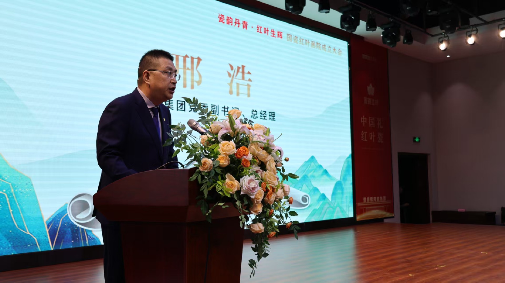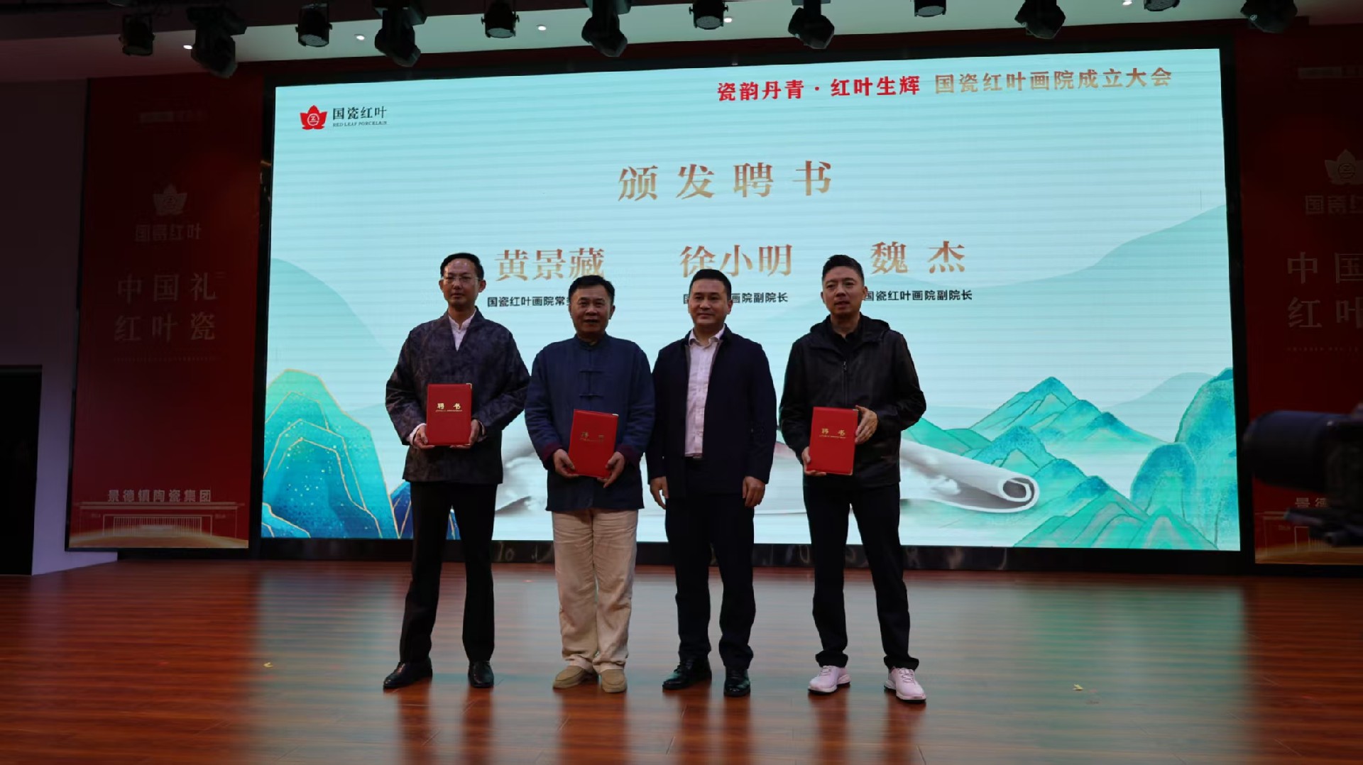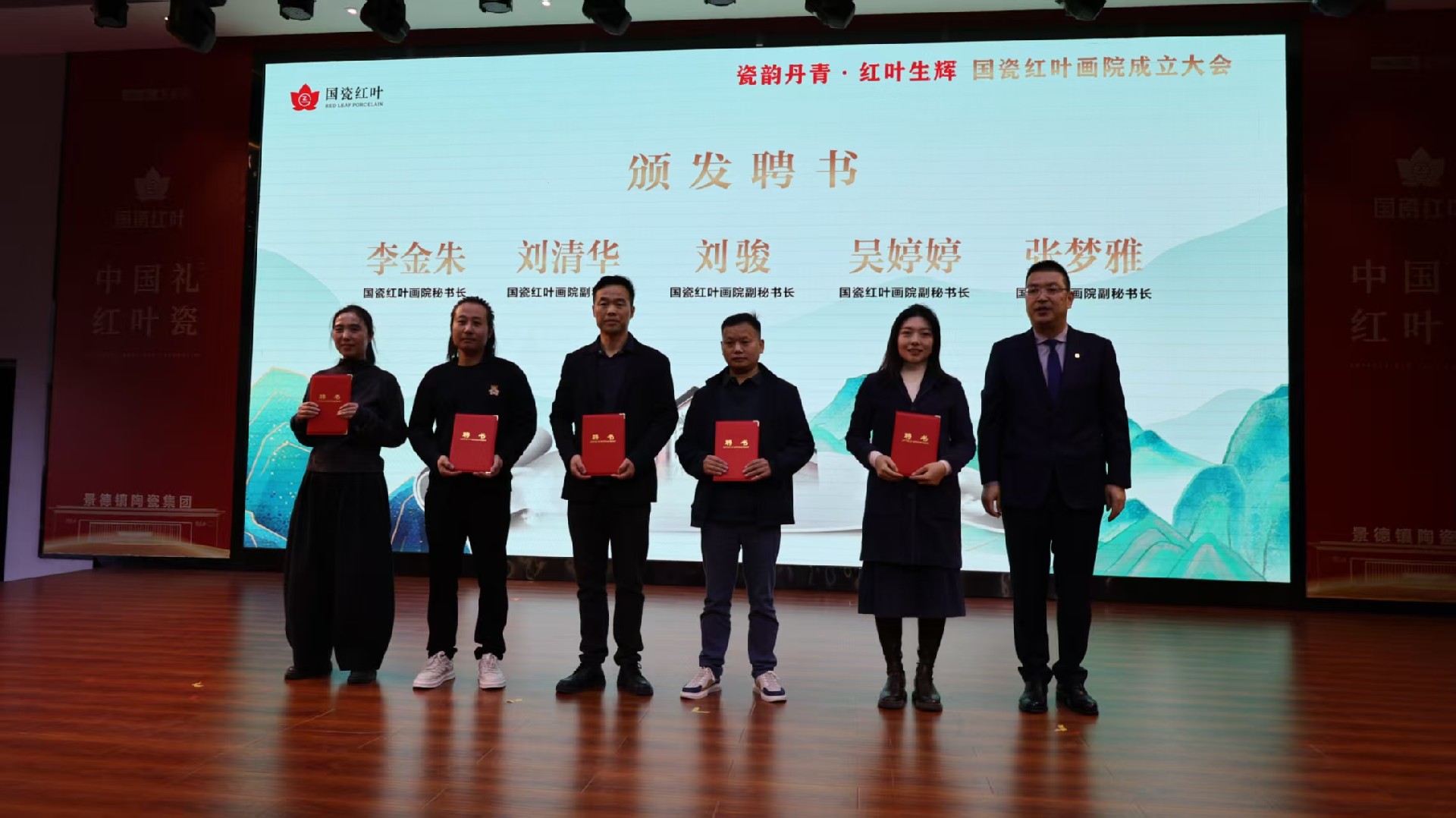 瓷都盛會話傳承,紅葉溢彩繪新篇。11月9日上午,景德鎮(zhèn)陶瓷集團(tuán)旗下國瓷紅葉畫院成立大會在紅葉陶瓷國瓷館隆重舉行。江西省輕工業(yè)聯(lián)合會理事長鄭正春,景德鎮(zhèn)市政府黨組成員、昌南新區(qū)黨工委書記余立新,景德鎮(zhèn)陶瓷研究院黨組書記、院長吳浪,江西陶瓷工藝美院黨委委員、副院長朱輝球,江西省輕工業(yè)聯(lián)合會秘書長崔軍,景德鎮(zhèn)陶瓷協(xié)會秘書長陳華清,中國工藝美術(shù)大師劉偉,中國工藝美術(shù)大師黃景藏,景德鎮(zhèn)陶瓷大學(xué)設(shè)計藝術(shù)學(xué)院院長余劍峰,景德鎮(zhèn)學(xué)院陶瓷美術(shù)與設(shè)計藝術(shù)學(xué)院黨委書記陳后輝,市工信局副局長朱成,市昌南新區(qū)黨工委委員、管委會副主任張英,景德鎮(zhèn)新聞傳媒集團(tuán)副總經(jīng)理丁添,北京天壇文化產(chǎn)業(yè)有限公司CEO王莎莎,嗶哩嗶哩Vsinger業(yè)務(wù)部—市場總監(jiān)劉冰潔及景德鎮(zhèn)陶瓷集團(tuán)領(lǐng)導(dǎo)班子等領(lǐng)導(dǎo)和嘉賓出席大會。