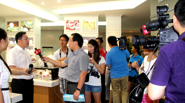 7月7日上午,由中央電視臺(tái)、光明日?qǐng)?bào)、江西日?qǐng)?bào)、江西電視臺(tái)、江西人民廣播電臺(tái)等20多家中央、省級(jí)媒體組成的記者采訪團(tuán)專程來景,集中采訪報(bào)道我市陶瓷文化及產(chǎn)業(yè)發(fā)展情況。公司黨委書記、董事長王耀全程陪同采訪。