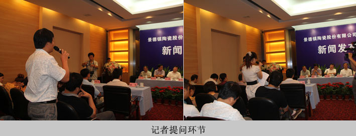 新聞發(fā)布會(huì)上,市人大副主任、市委秘書長(zhǎng)余振泰,市政府副秘書長(zhǎng)、市國(guó)資委黨委主任劉朝陽(yáng),市旅游局局長(zhǎng)饒寧生,陶瓷股份公司黨委書記、董事長(zhǎng)王耀、黨委副書記、總經(jīng)理夏躍中等相關(guān)人員就陶瓷股份公司近年來(lái)的發(fā)展、公司工業(yè)旅游發(fā)展、實(shí)施品牌戰(zhàn)略等方面回答了與會(huì)新聞媒體記者的提問。