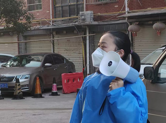 在這場(chǎng)沒(méi)有硝煙的戰(zhàn)“疫”中,邵建華與邵燕翎既是父女,更是“戰(zhàn)友”。父親每日在現(xiàn)場(chǎng)維持秩序,女兒每天拿著喇叭挨家挨戶的督促居民下樓做核酸,幫助老年人出示核酸碼等工作。父女倆各盡其責(zé)、互相鼓勵(lì)、并肩作戰(zhàn),用最樸實(shí)的行動(dòng)筑牢疫情防線,他們和大家一樣,希望通過(guò)共同努力,早日戰(zhàn)勝這場(chǎng)疫情阻擊戰(zhàn)。
