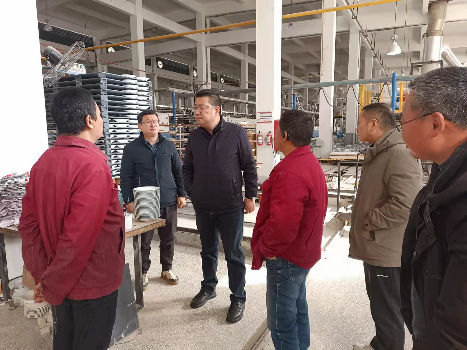 走進(jìn)工廠車間,邢浩著重檢查了一廠的用氣、用電安全情況,以及各種消防設(shè)施的配備和使用狀態(tài),每一個角落、每一處細(xì)節(jié)都不放過。并與一線員工親切交談,了解他們的日常操作流程,詢問他們對消防安全的認(rèn)識和操作。來到國瓷館,詳細(xì)了解消防安全通道是否暢通、消防器材是否能正常使用,是否落實防火巡查檢查,是否違規(guī)使用電器等,對存在的問題提出了具體的整改意見和要求。