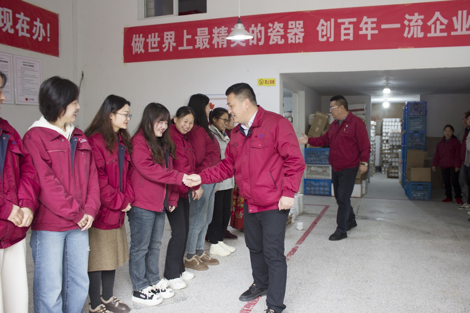 在金品陶公司、紅葉公司一廠、三廠、研究所和窯具廠,領導們與夾道歡迎的員工致以新春祝福。希望生產(chǎn)口在提質(zhì)增效上要有新?lián)敗?/span>