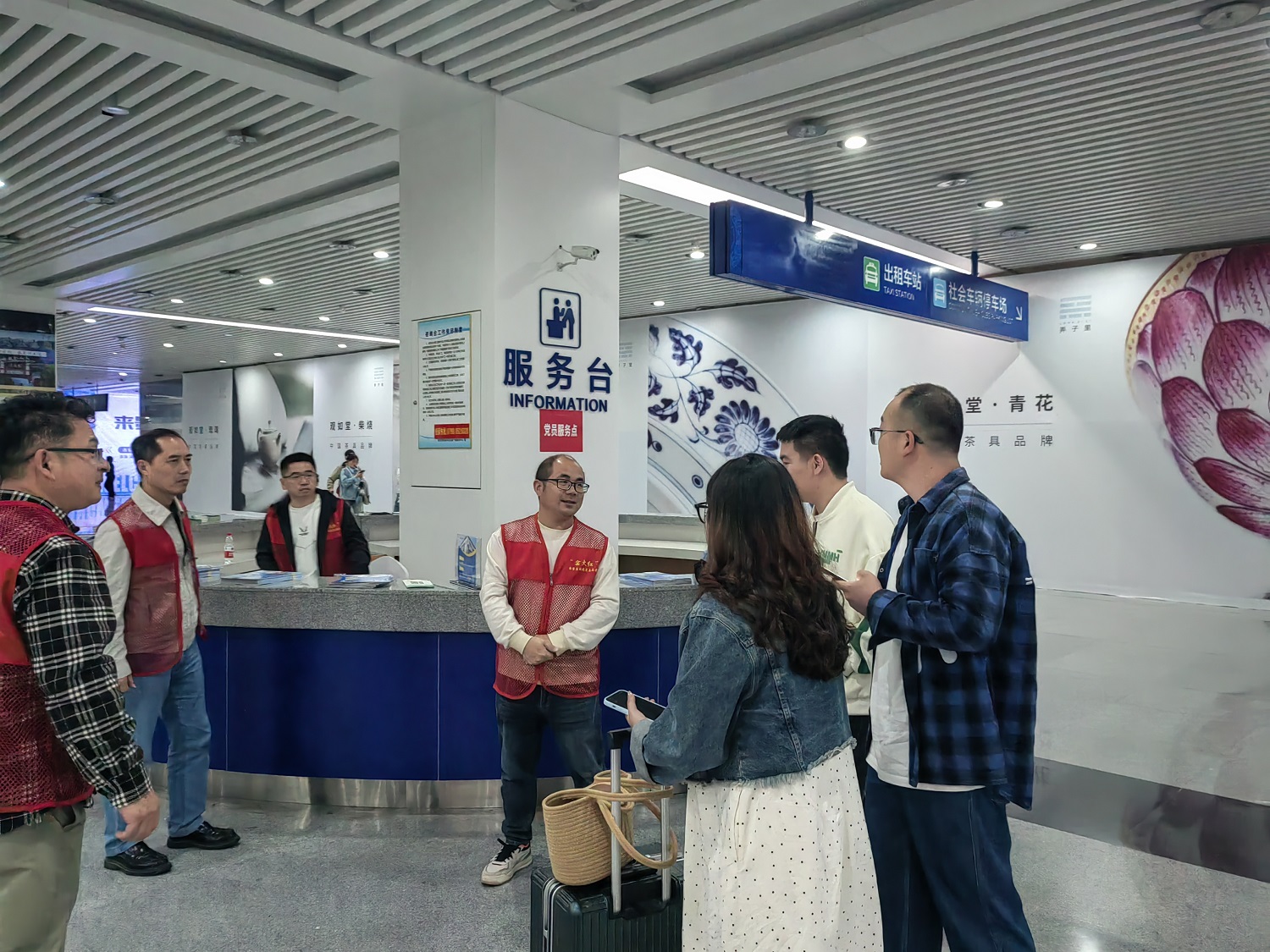 4月30日,五一假期前夕,景陶集團(tuán)組織70多名黨員志愿者參加市“窯火紅”黨員志愿服務(wù)活動(dòng)。他們身穿紅馬甲,忙碌穿梭在景德鎮(zhèn)北站南廣場(chǎng),北廣場(chǎng)和羅家飛機(jī)場(chǎng)的旅客中,為來(lái)景游客指引路線(xiàn),提行李,推介美食美景美宿,引導(dǎo)車(chē)輛有序停放等,送上熱忱暖心的服務(wù),流動(dòng)的紅馬甲成為一道靚麗的“風(fēng)景線(xiàn)"。